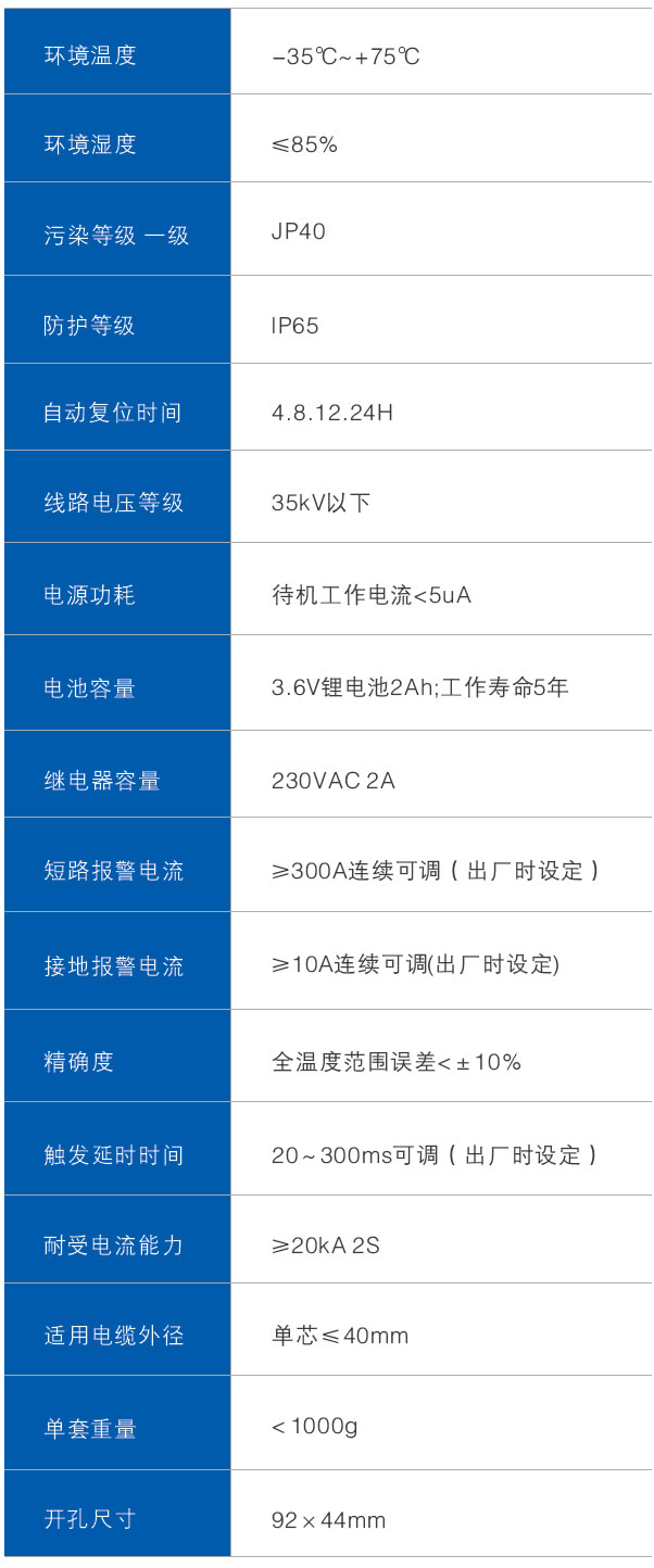 當供電線路有短路或接地故障發生時,短路或接地電流產生的電磁場變化,使固定在電纜上的傳感器中測量線圈產生脈沖信號,當脈沖信號的值的大小達到或超過設定的故障電流值時,故障指示器會自動記憶故障狀態,故障指示燈閃爍發出故障指示,同時通過遠程報警接口,將故障 信號傳遞給監控中心,工作人員通過故障指示信號能夠迅速準確地找到線路故障位置,及時排除故障,恢復電網供電。